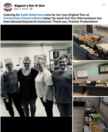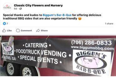 Fresh, delicious, and made-to-order dishes for Biggum’s BBQ foodies. We offer catering/vending for any occasion - ANYTHING😊